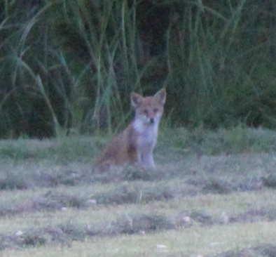 久しぶりに、キツネいてるなあ、、あれ小さめやな?とみていると、